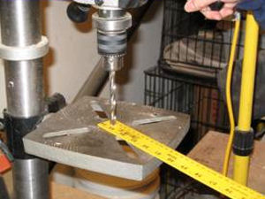 1. Drill two holes into the ruler, one at each end that the long screws will fit through.