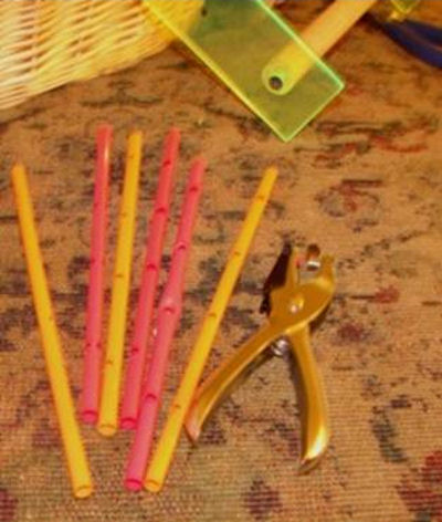 Straws are a favorite! The straws were marked and the holes punched before cutting them into small pieces. If you cut the straws up first, it's much more difficult to punch the holes.