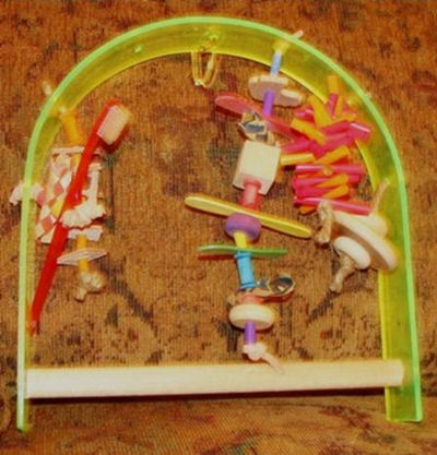 I wanted to share this fun project with you all! A breeder friend got rid of all her birds and was throwing out all her old toys, broken bits and pieces and some extras. Well of course I took what I thought I might be able to use. These swings are some of those odds and ends.