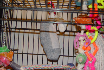Sit back and watch the fun as your parrot explores the variety of materials and textures to play with. Our parrots have a variety of ways of playing with the piñatas, from making a small hole in the side and taking pieces out one at a time, to ripping the sock apart and playing with the contents like foot toys.